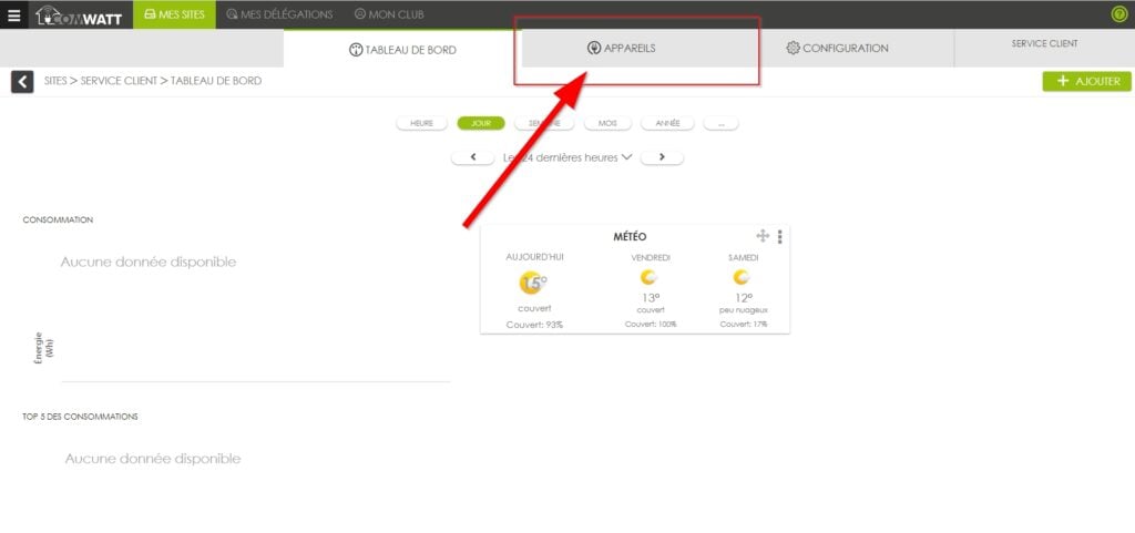 - Connectez-vous à votre application “Comwatt Mon Energie” et allez dans l’onglet “Appareils”