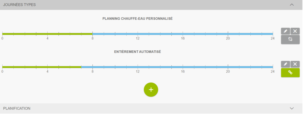 Le planning optimal est un planning automatisé. Il permet d’optimiser fortement vos économies, en permettant le déclenchement de vos appareils en fonction de vos habitudes de consommation, des données météorologiques, et de vos heures pleines et heures creuses.