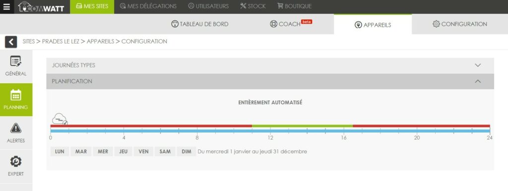 Vous n'avez rien à faire de particulier. Lors de l'ajout d'un appareil à votre interface Comwatt, un planning optimal est automatiquement créé.